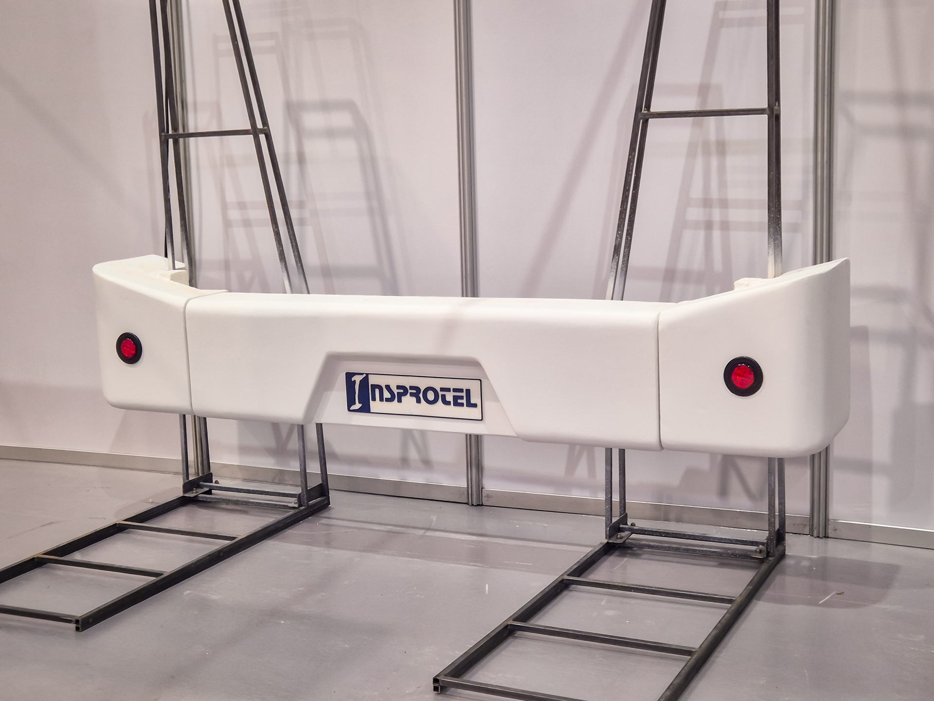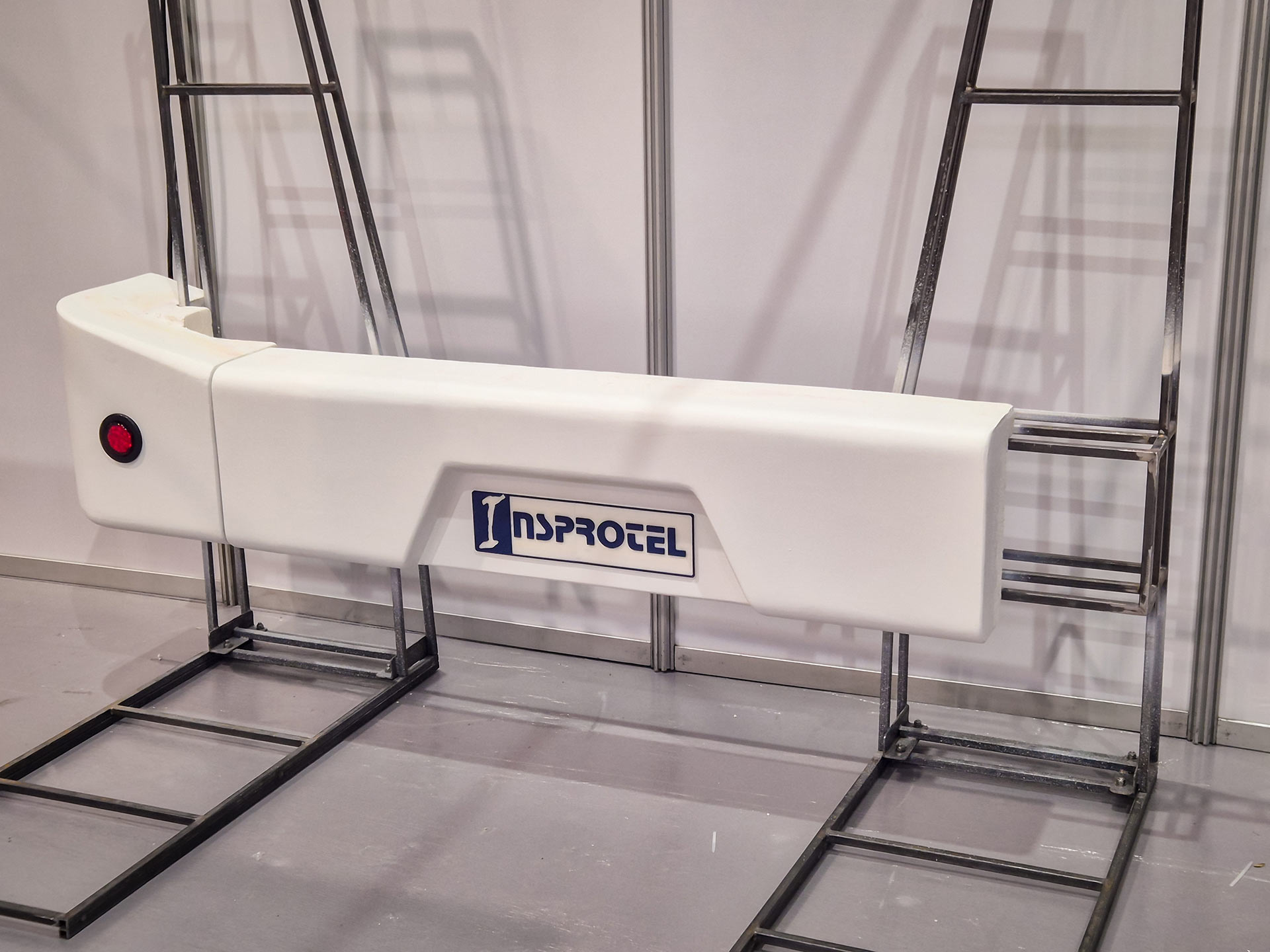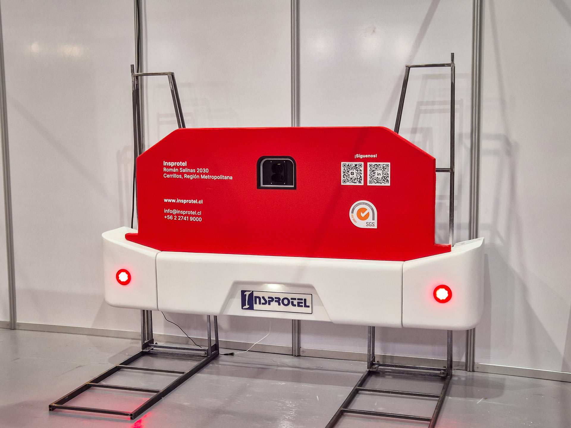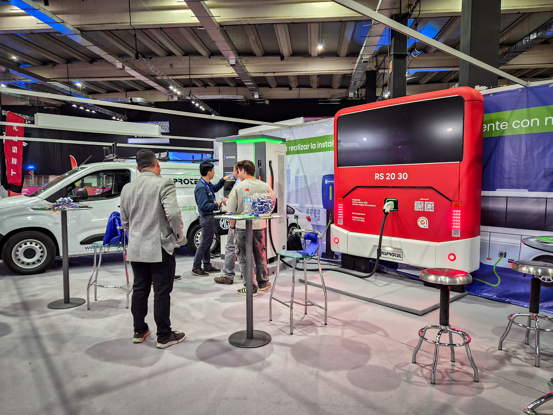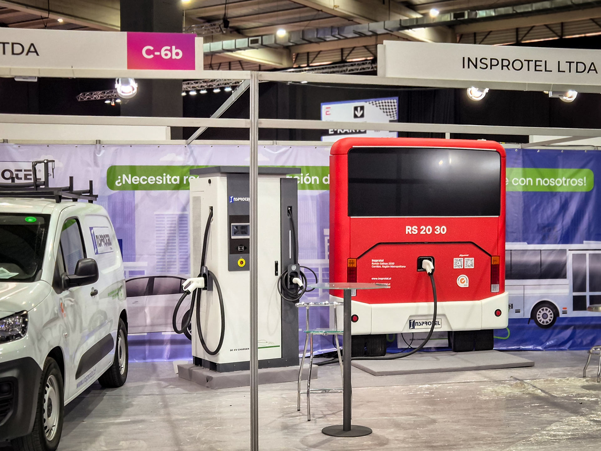 Diseñamos y producimos una maqueta desarmable a escala real de la parte trasera de un bus eléctrico, pensada como pieza central del stand de Insprotel en la feria de electromovilidad.