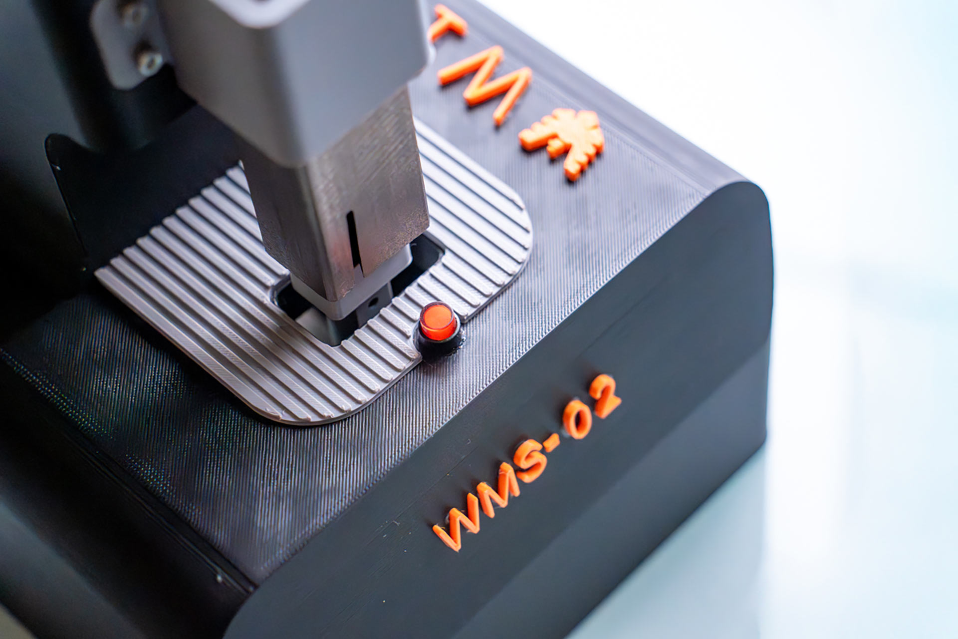 El prototipo incluye detalles de marca en relieve, botón de activación e integración mecánico–eléctrica oculta en la base, lo que lo convierte en una pieza robusta para sala de reuniones o ferias técnicas. Esta solución facilita explicar el principio de funcionamiento de la escobilla a equipos comerciales, clientes y personal técnico, haciendo tangible un componente que normalmente opera oculto dentro de la maquinaria.