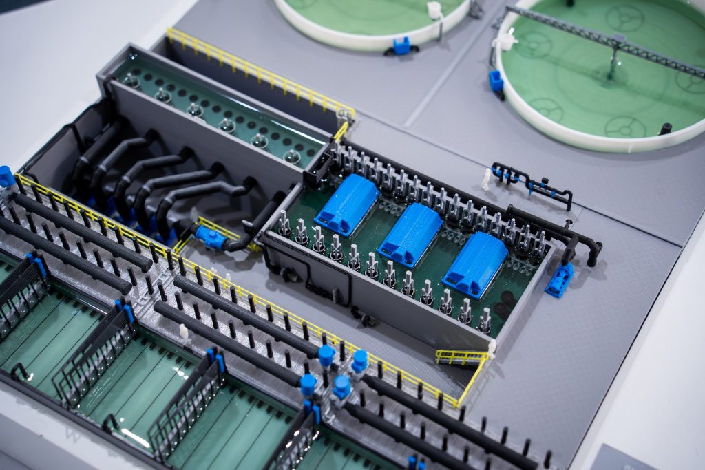 El prototipo incluye detalles de marca en relieve, botón de activación e integración mecánico–eléctrica oculta en la base, lo que lo convierte en una pieza robusta para sala de reuniones o ferias técnicas. Esta solución facilita explicar el principio de funcionamiento de la escobilla a equipos comerciales, clientes y personal técnico, haciendo tangible un componente que normalmente opera oculto dentro de la maquinaria.